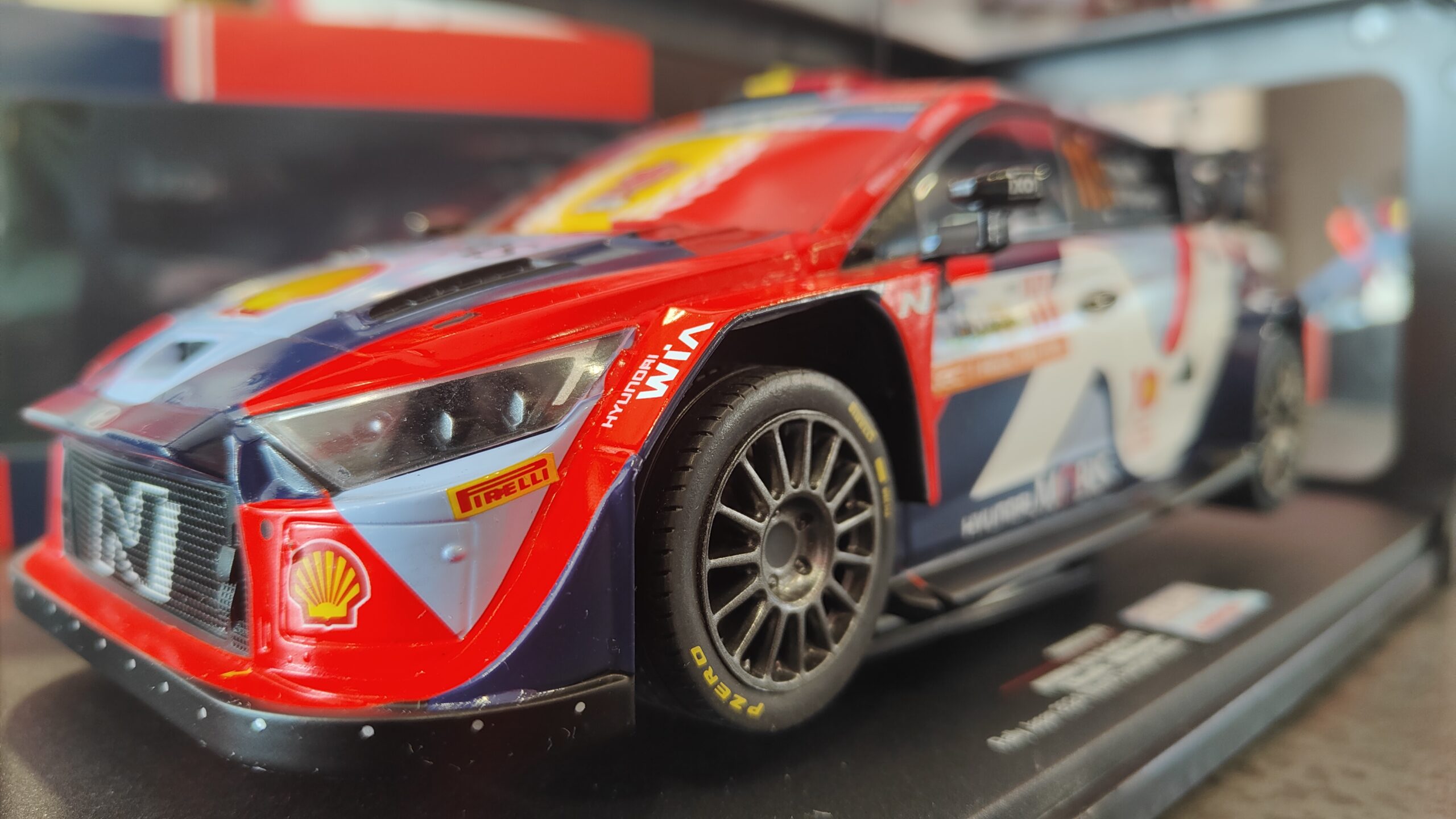 Questa edizione speciale presenta il caratteristico vetrocoperto con decal “world Champion”, proprio come nella livrea ufficiale usata da Hyundai nelle foto e celebrazioni post-gara. Un dettaglio fedele che rende questo modello ancora più esclusivo per i collezionisti.