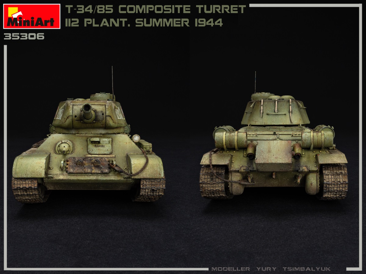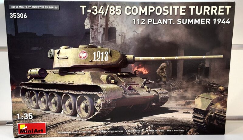 Kit di montaggio in scala 1:35 del celebre T-34/85 con torretta composita prodotto dalla Fabbrica 112 (Estate 1944), realizzato da MiniArt.